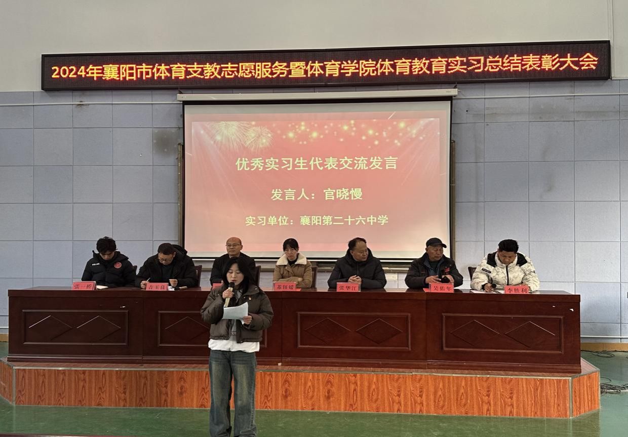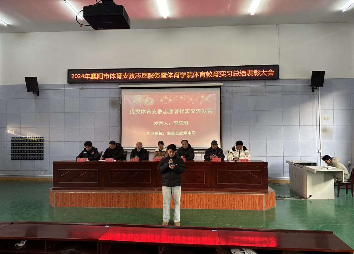 (通讯员 李胜利)2024年12月30日上午,襄阳市体育支教志愿服务暨体育教育系2021级实习总结表彰大会在S3-JT03举行,伟德国际victor1946党委书记罗华国、院长张华江,襄阳市文化和旅游局竞训科科长苏钰媛,伟德国际victor1946副院长吉玉良和负责支教工作的吴佑年、李胜利、张一桥等人出席会议。