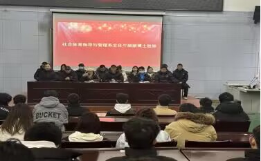 首先,夏昌辉老师具体介绍了社会体育指导与管理系的办学历史、培养目标、师资条件,并着重向同学们介绍了每一位专业教师的基本信息、教授课程、研究方向等情况,让同学们认识并了解本系的专业教师。