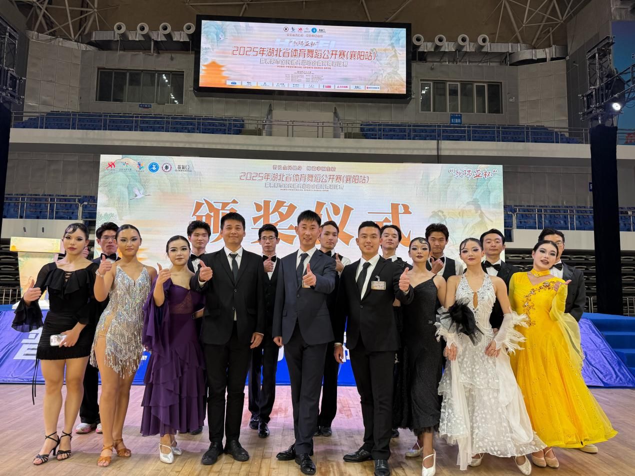 此次比赛涵盖拉丁、标准两大舞系,我校代表队在林万雷、向长青、康吉提三位老师的带领下,15名选手精神饱满、发挥稳定,凭借扎实的功底和富有感染力的表现脱颖而出,最终斩获高等院校组6项第一名、5项第二名、3项第三名的优异成绩。