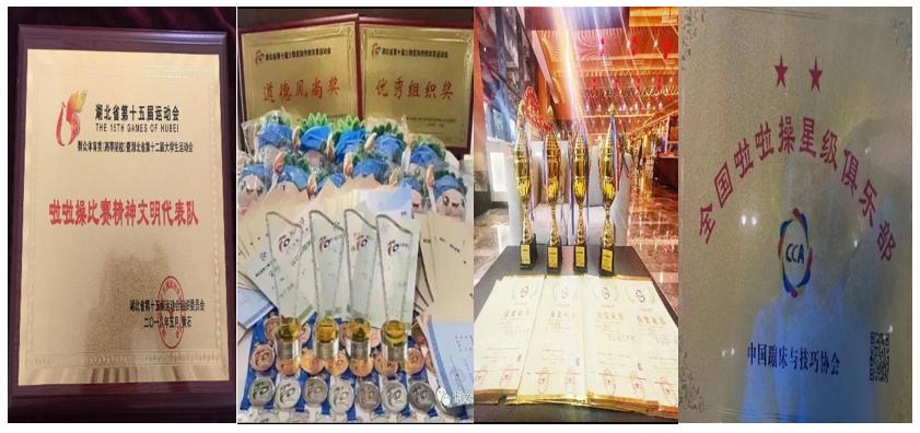 健美操运动队自创立以来,队员们在教练团队的指导下,始终秉持“在团队中成长,在奉献中蜕变”的队训精神,在省级及国家级赛事中屡创佳绩。先后获健美操、啦啦操、排舞等项目国家级赛事特等奖16个,一等奖24个,二等奖30个,三等奖9个;省级赛事一等奖28个,二等奖18个;市级赛事一等奖12个等。